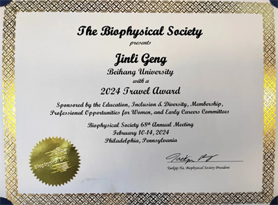 在美国费城举办的第68届国际生物物理学会年会(Biophysical Society Annual Meetings)上,博士研究生耿金丽同学凭借在钙通道-钙信号分子工具方面的研究成果,荣获2024年度“Graduate Travel Award”。生物物理学会成立于1956年,是生物物理领域内成员最多、影响力最大的专业学会,所举办的学术年会也是全球生物物理学者规模最大的年度聚会,吸引着世界各地来自于生命科学、物理、工程及相关领域的科学家和专业人士。学会特别为处于职业生涯早期的青年学者和学生设立了Travel Award,以候选人的科学贡献为主要标准进行竞争性评选,在学术年会期间公开给予表彰奖励。