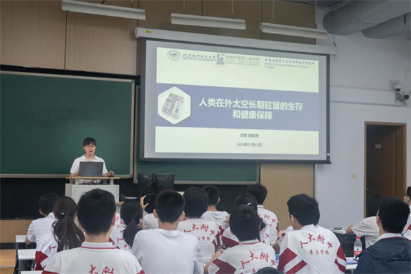 为深入学习贯彻习近平总书记在全国科技大会、国家科学技术奖励大会、两院院士大会上的重要讲话精神,一体推进教育发展、科技创新、人才培养,7月2日,研究生“月宫一号”学生党支部积极发挥科普先锋作用,为人大附中丰台初三学子精心组织了科普讲座与实地参观活动,旨在广泛普及航天科技的丰富知识,点燃青少年对航天科学的热爱之火,并激励他们勇于探索未知领域,积极攀登科学高峰。