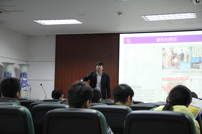 首先,谊安医疗系统股份有限公司人事行政部部门经理王硕先生向我们介绍了谊安医疗系统集团的发展历史和企业文化。北京谊安医疗系统股份有限公司是中国领先的手术室和ICU设备研发制造厂商及医疗系统解决方案提供商之一。公司的创始人是我校的老校友,目前公司和我校也有合作项目。公司有七大营销平台、五大事业部,生产优质产品,提供了专业前沿的专家方案。公司主要研发手术台、无影灯、呼吸机和输液泵等大型医疗设备,在国内品牌市场中占据了数一数二的地位。