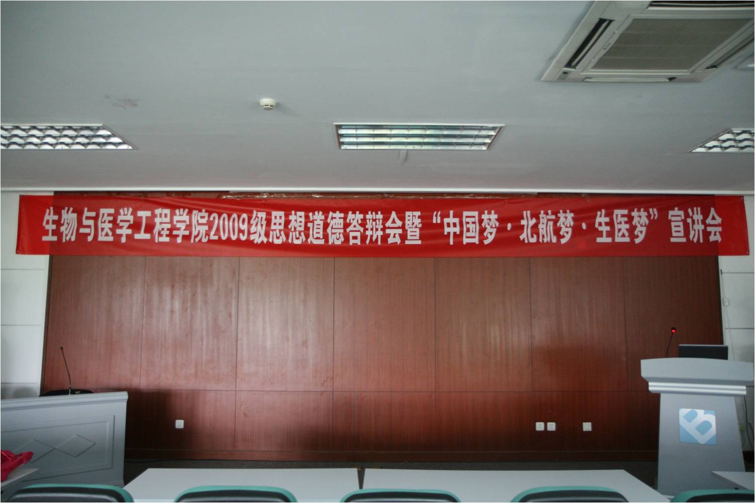 2013年5月18日上午,我院2009级毕业生思想道德答辩会暨“中国梦、北航梦、生医梦”宣讲会在逸夫科学馆416会议室顺利召开。出席此次答辩会的评委老师有蒲放副院长、研究生指导主任刘岩老师、391011班班主任宋崴老师、391021班班主任贾潇凌老师、2012级辅导员王泽宇,2009级全体毕业生参加了此次答辩会。